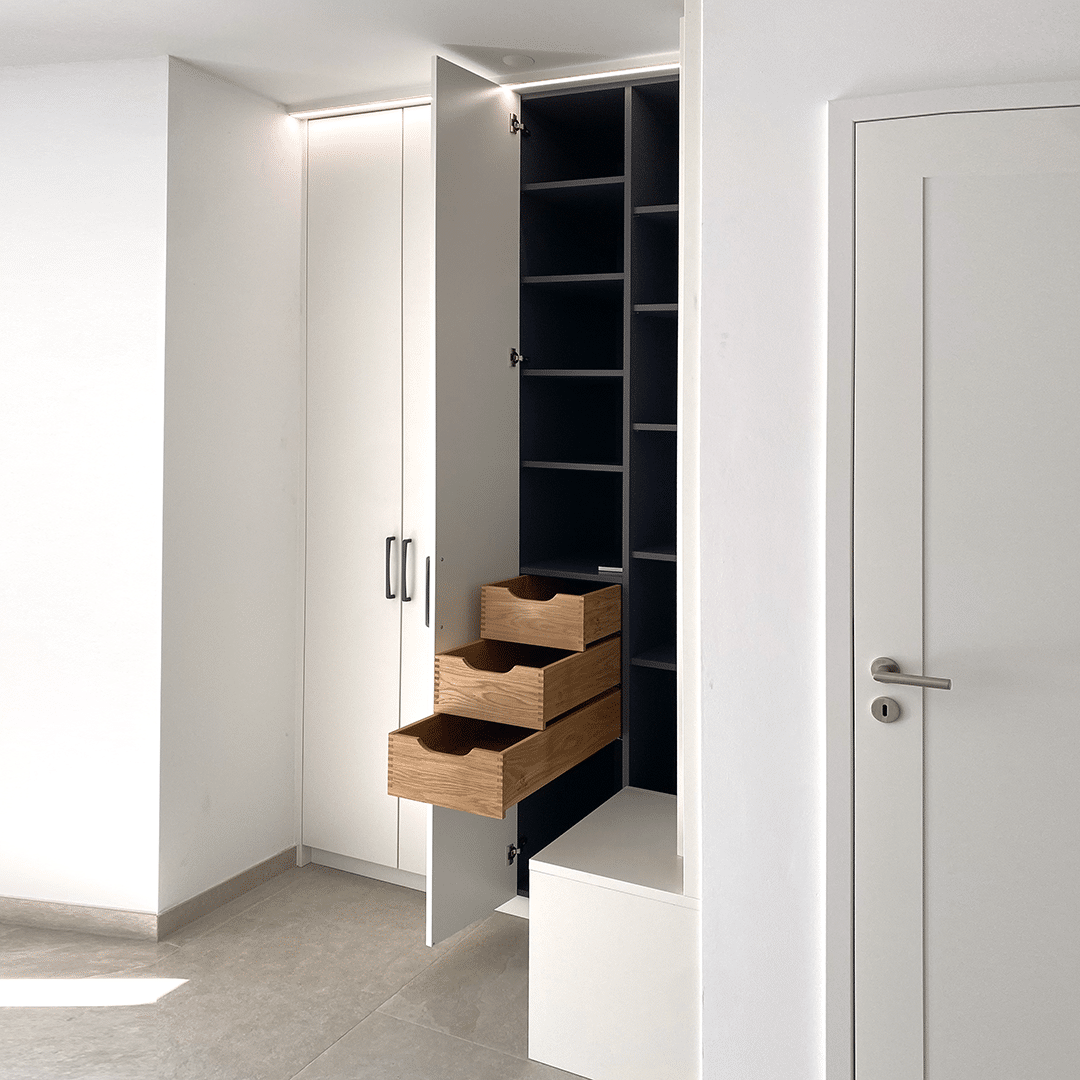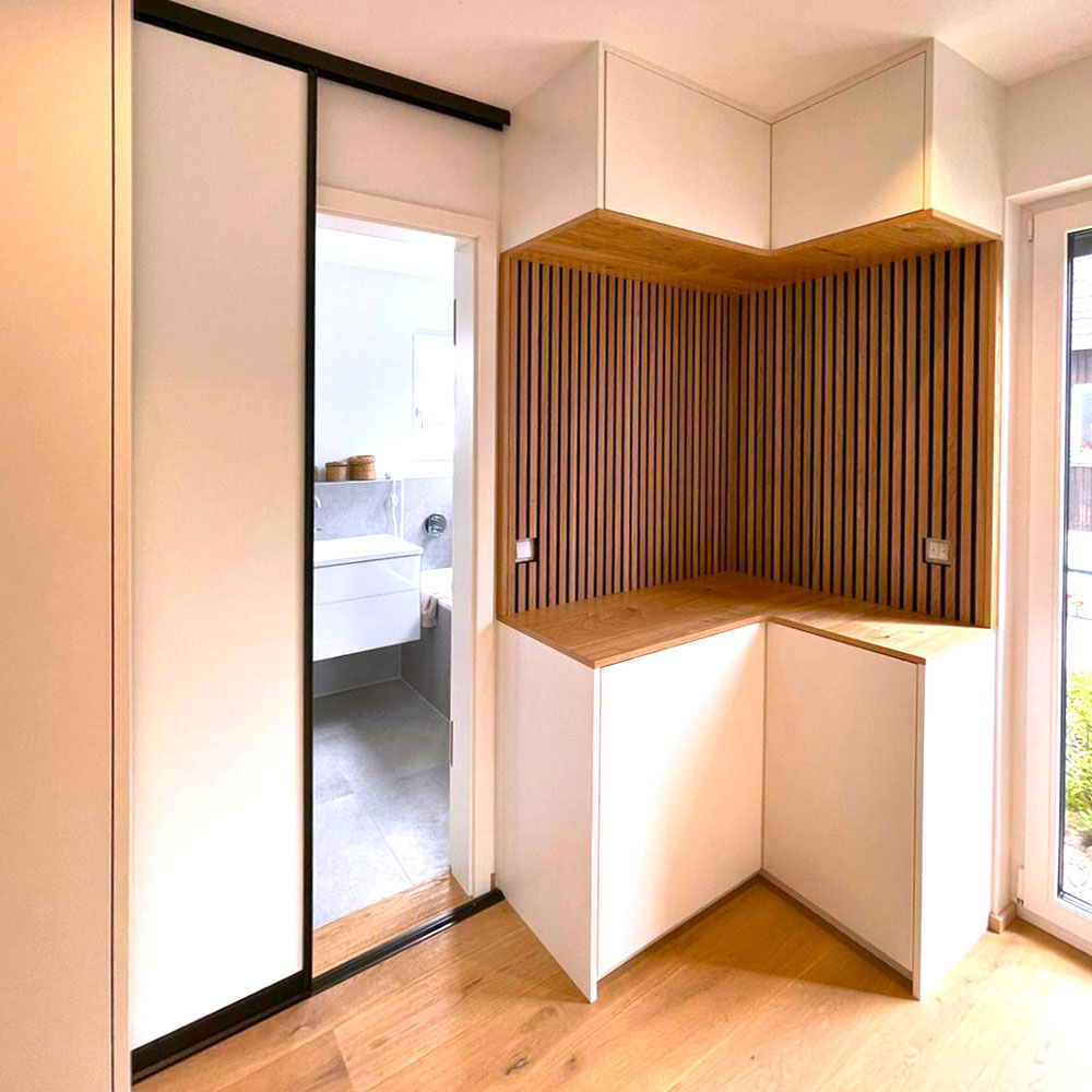 wir Sie fundiert, hören gut zu und nehmen genau Maß. Sie wählen die passenden Materialien, Extras und Oberflächenveredelungen. Wir fertigen, liefern und montieren Ihre Wunscheinrichtung nach Maß.