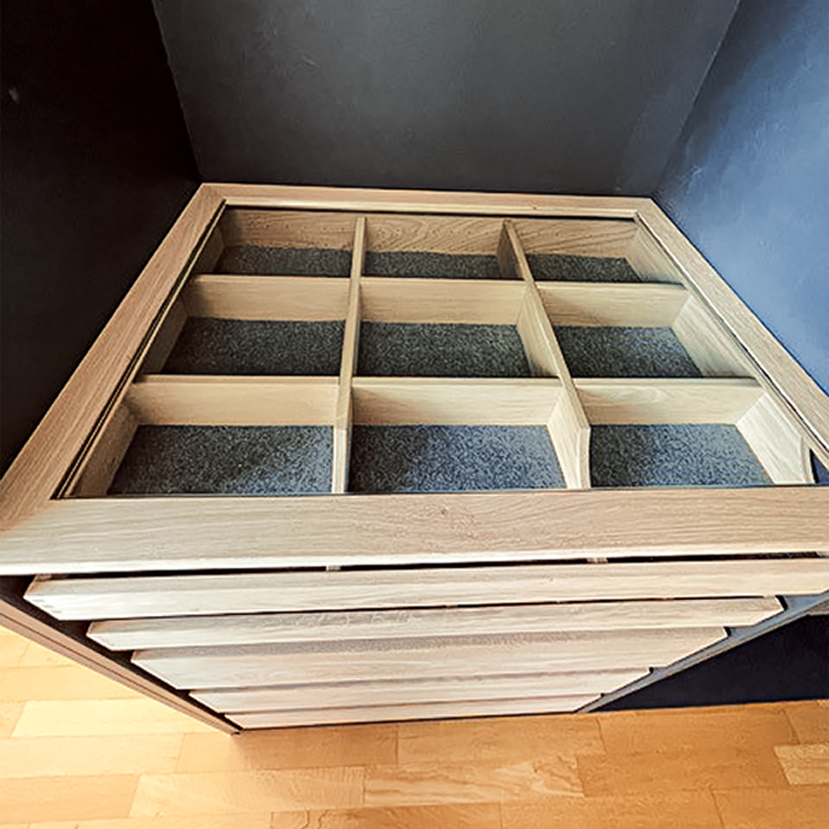 In der Fertigung setzen wir auf handwerkliche Qualität und hochwertige Materialien, die wir für die Möbelschreinerei sorgfältig auswählen.